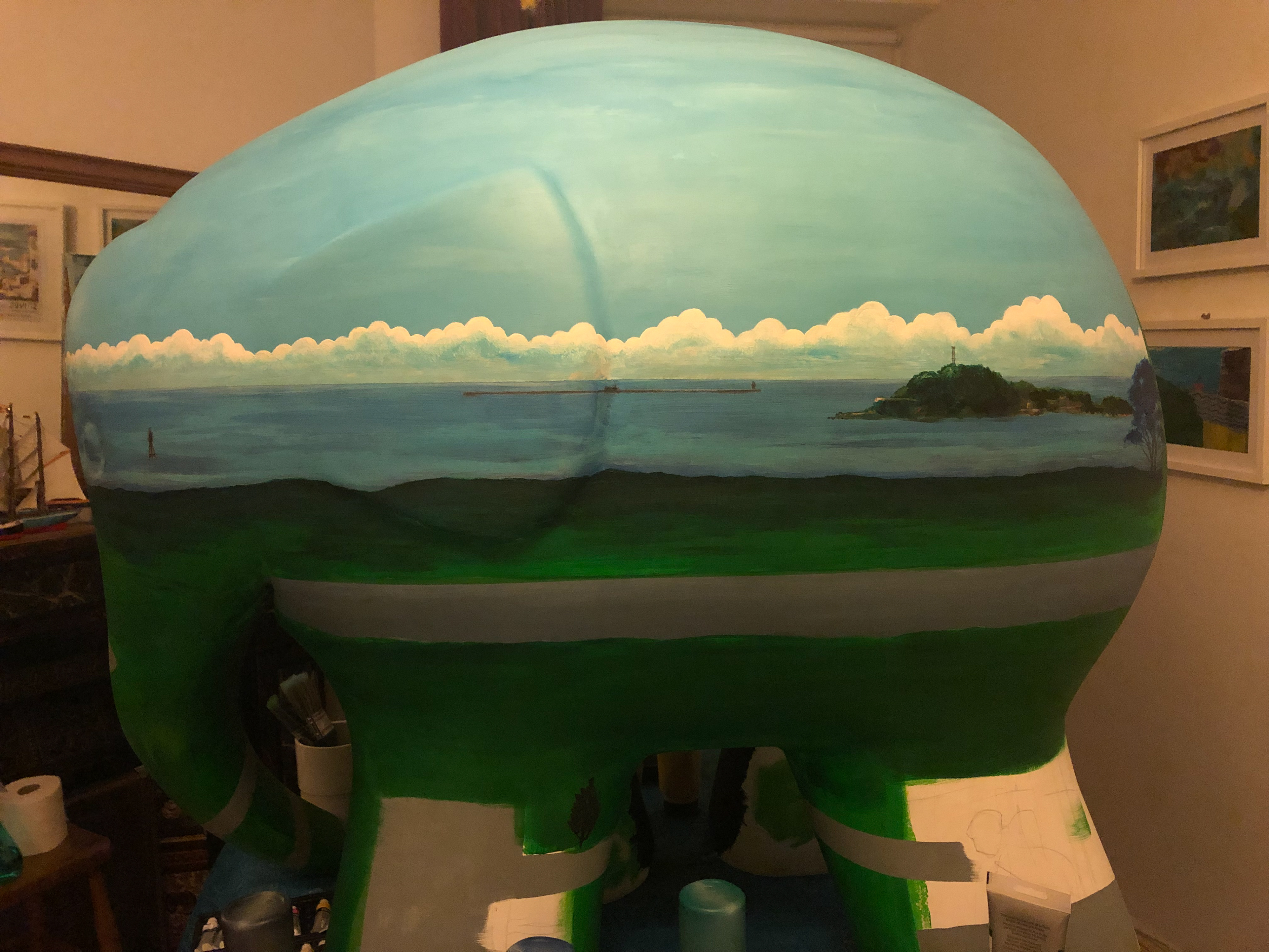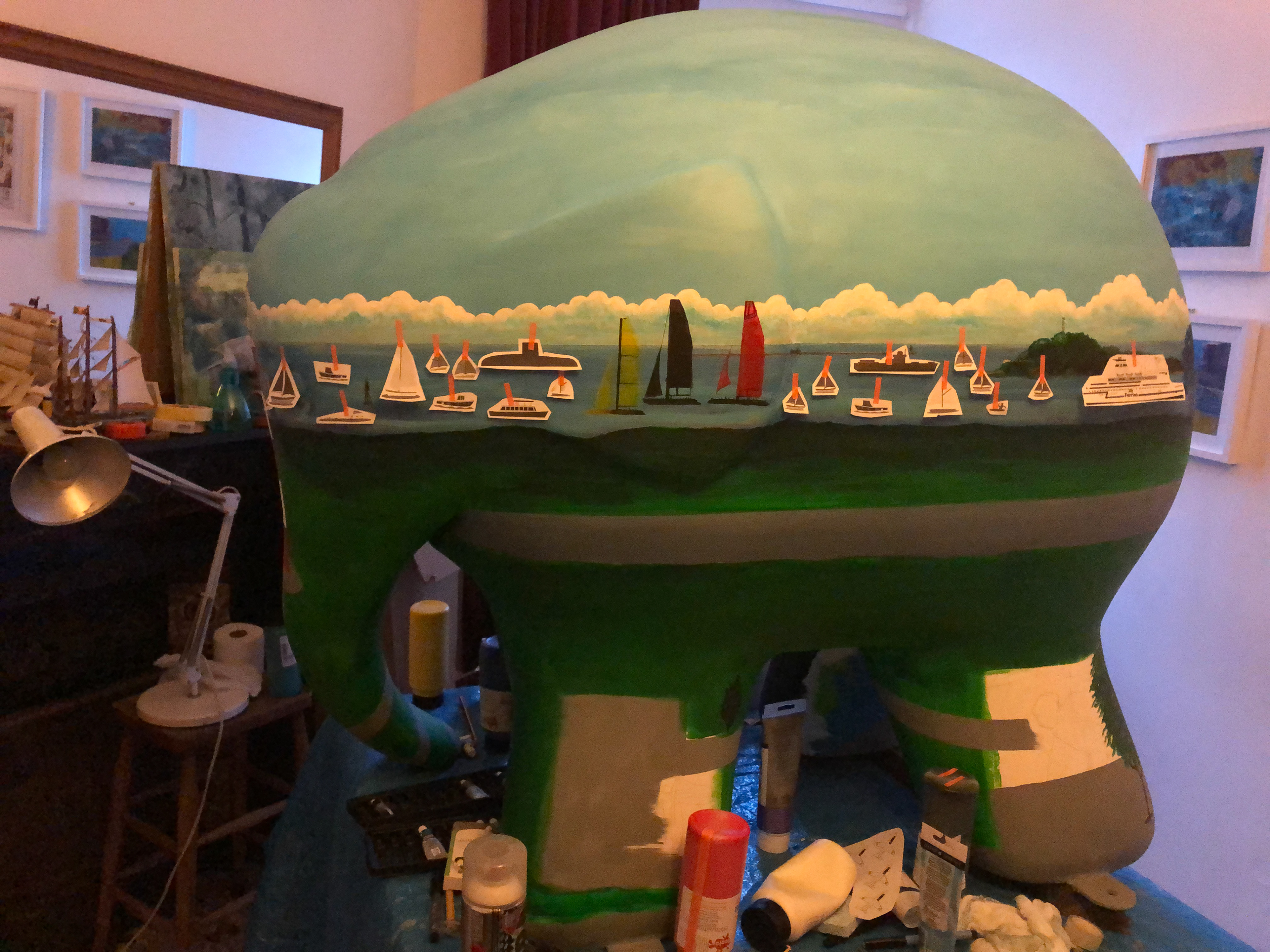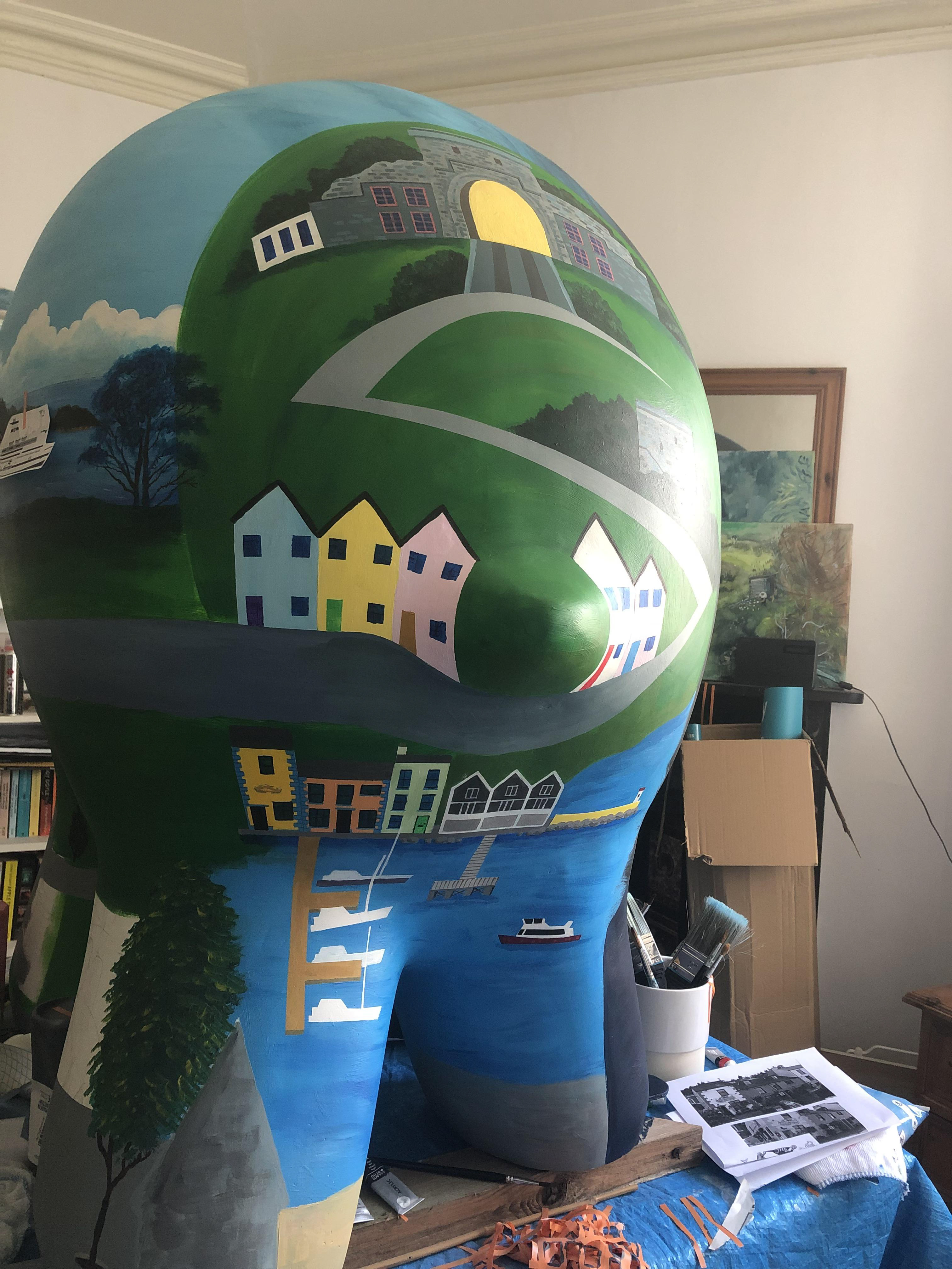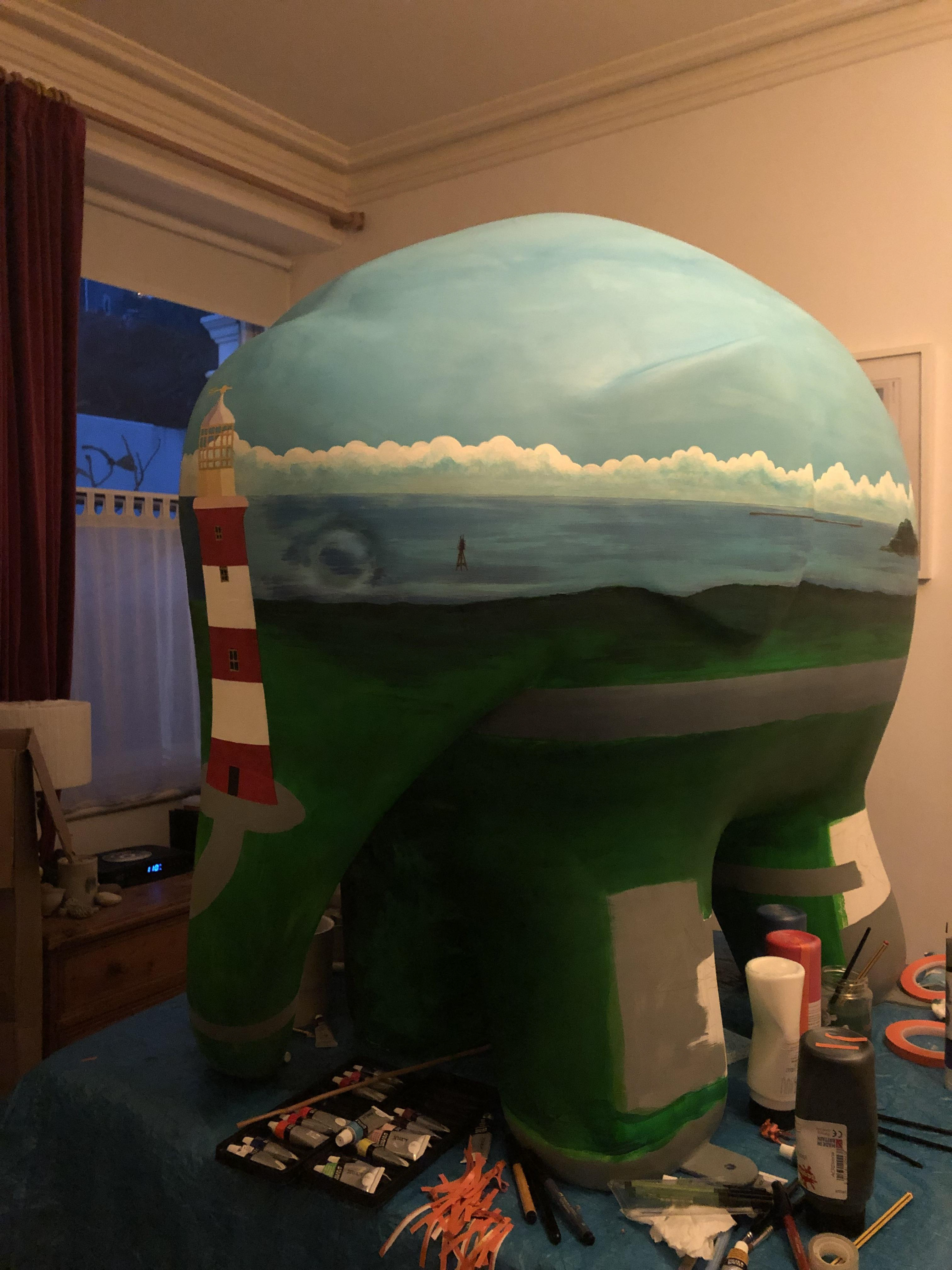 I sketched details on to paper then positioned them on the elephant. This helped with the busy composition of the Plymouth Sound side.
