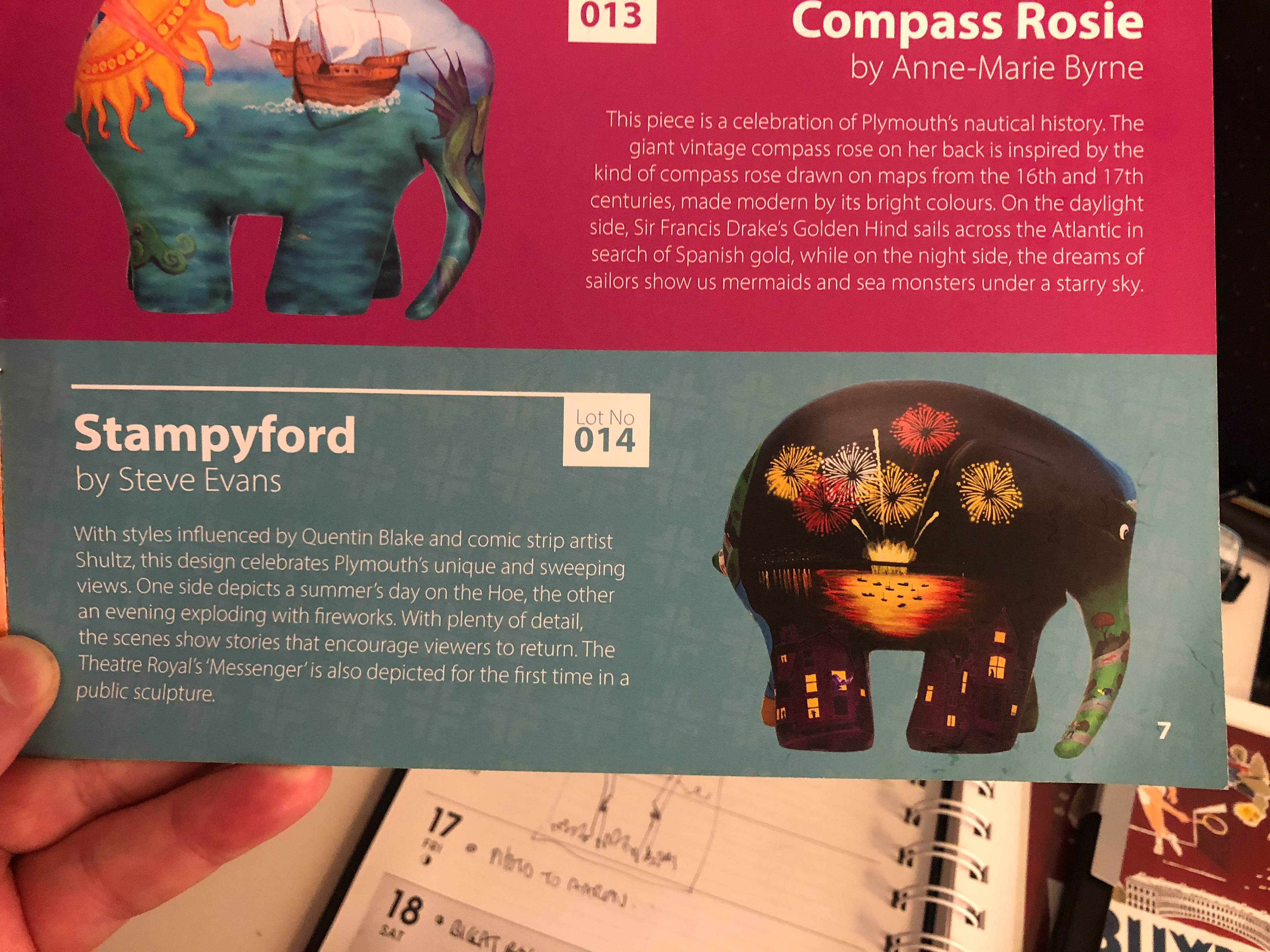 They asked if the Fort could be incorporated into the design, which could replace Mount Edgcumbe House on the rear of the elephant. We also discussed the firework display side of the elephant and how this could be adapted to a view across to Turnchapel from the Barbican. I agreed to both ideas as this wouldn't change the overall design of a 'celebration of Plymouth'.