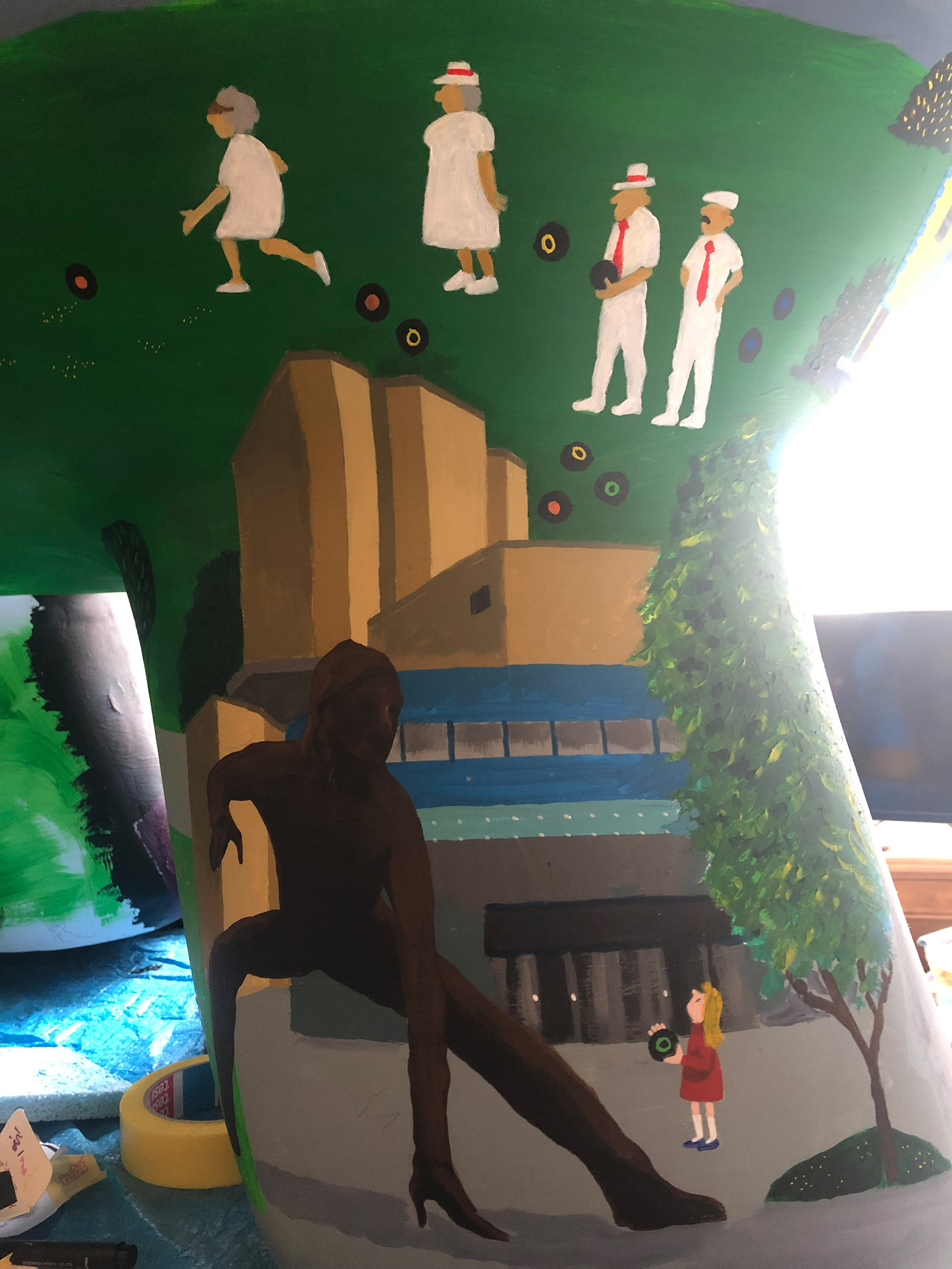 Before being placed throughout the city, the elephants needed a coat of varnish. I helped with this laborious process. Seeing all of the many amazing designs together in one room was breathtaking.