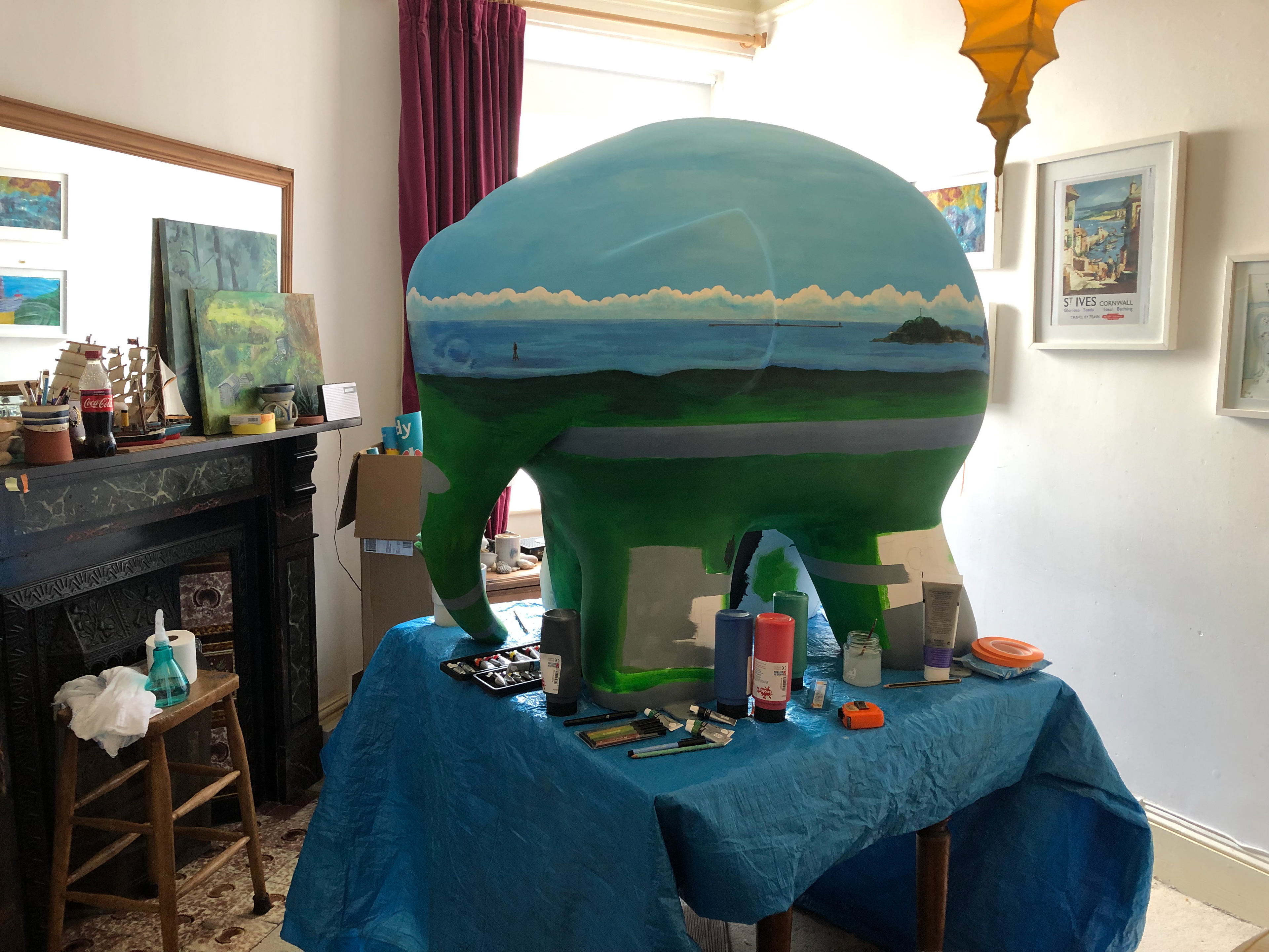 And I was the first to paint the wonderful new Theatre Royal sculpture, 'The Messenger' on to my Elmer.