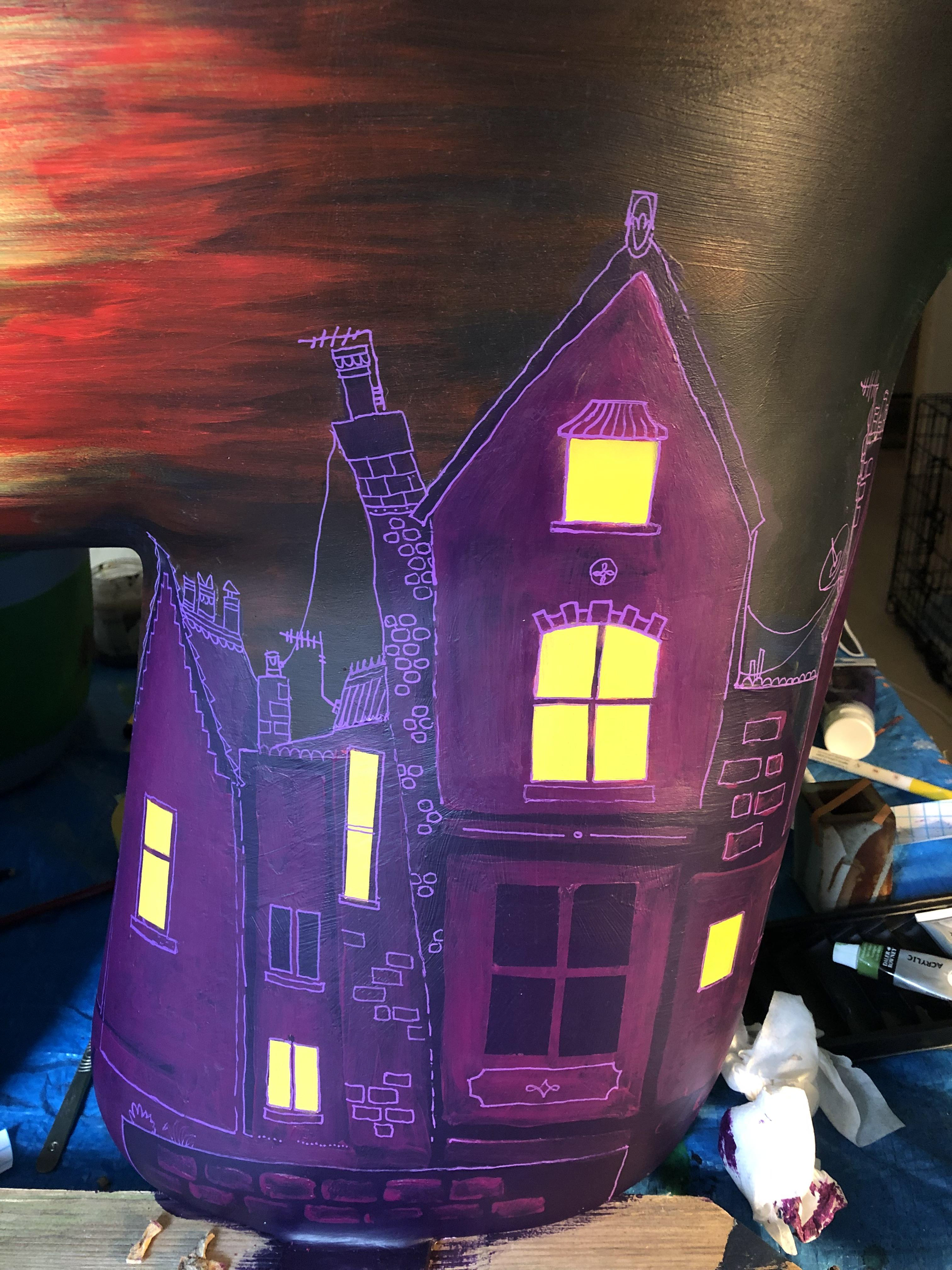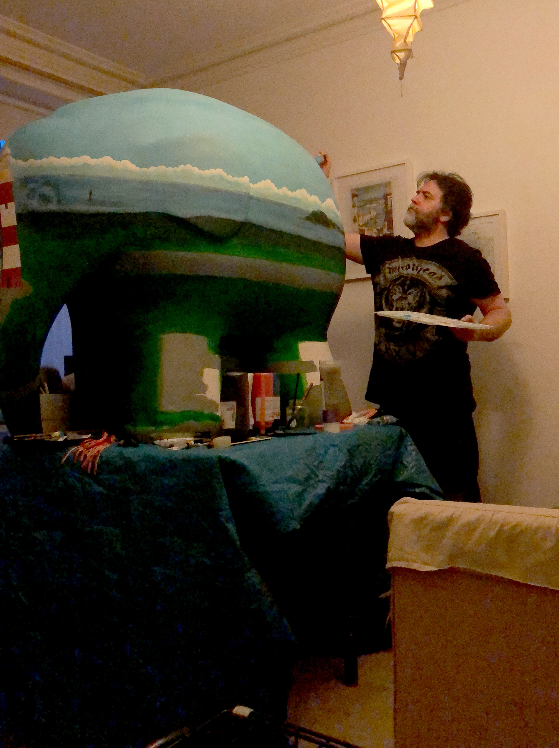 I'd never painted anything on a 3D shape before. It was a challenge to get all images and aspects to blend together. And yes, my beard does grow that quickly.