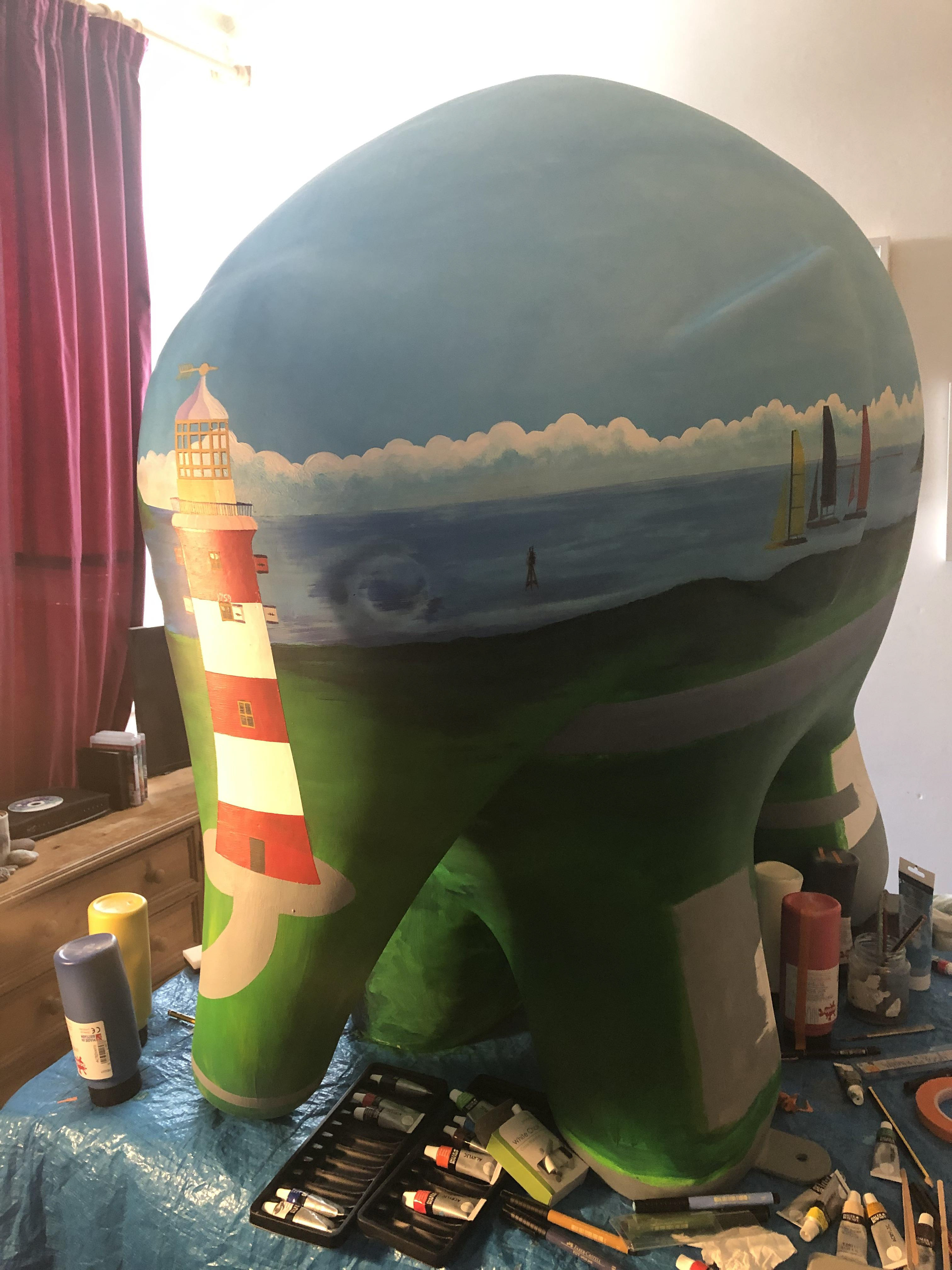 This design was chosen by one of the sponsors of the elephants, Stamford Fort Fitness and Health Centre, Jennycliff Lane in Turnchapel, Plymouth.