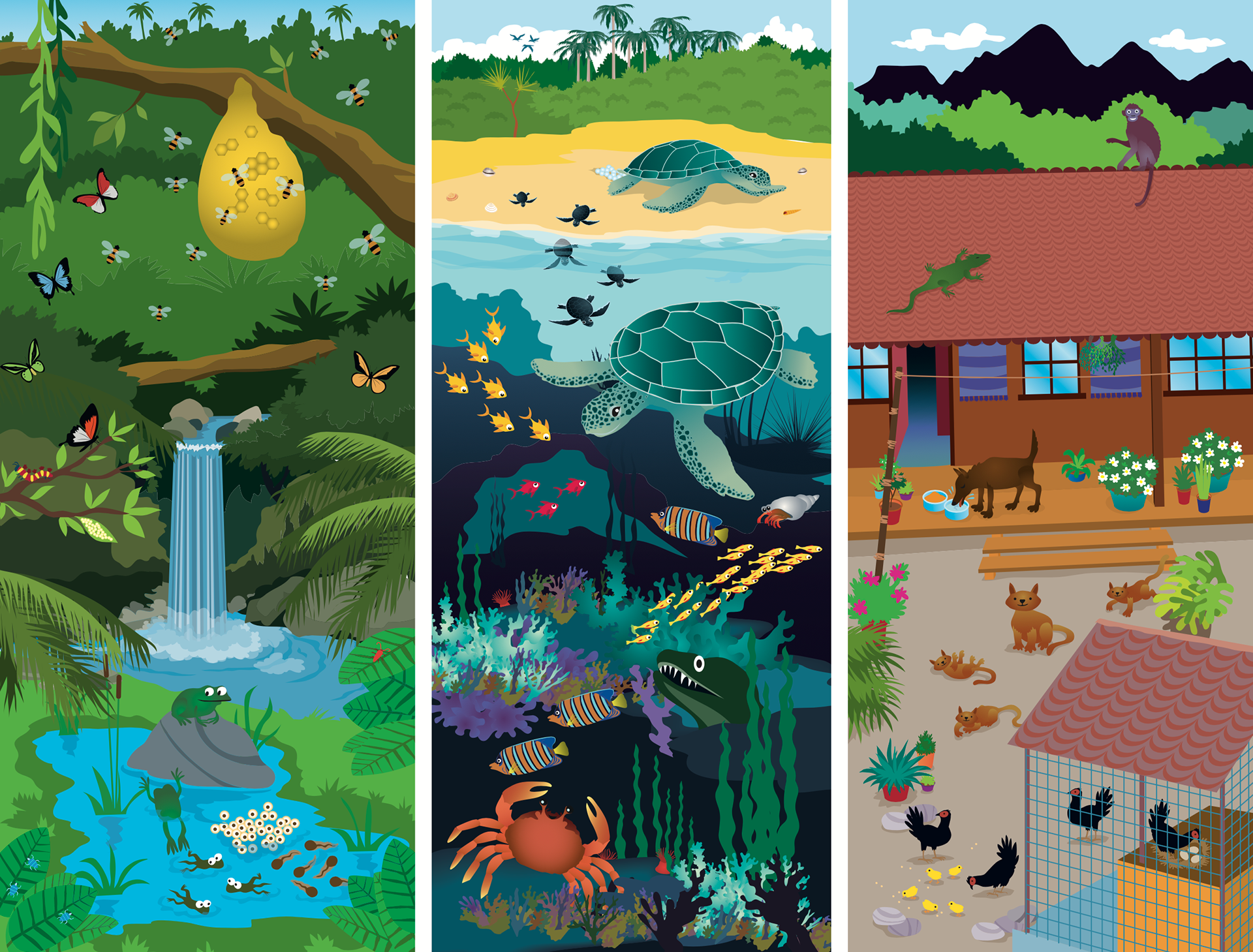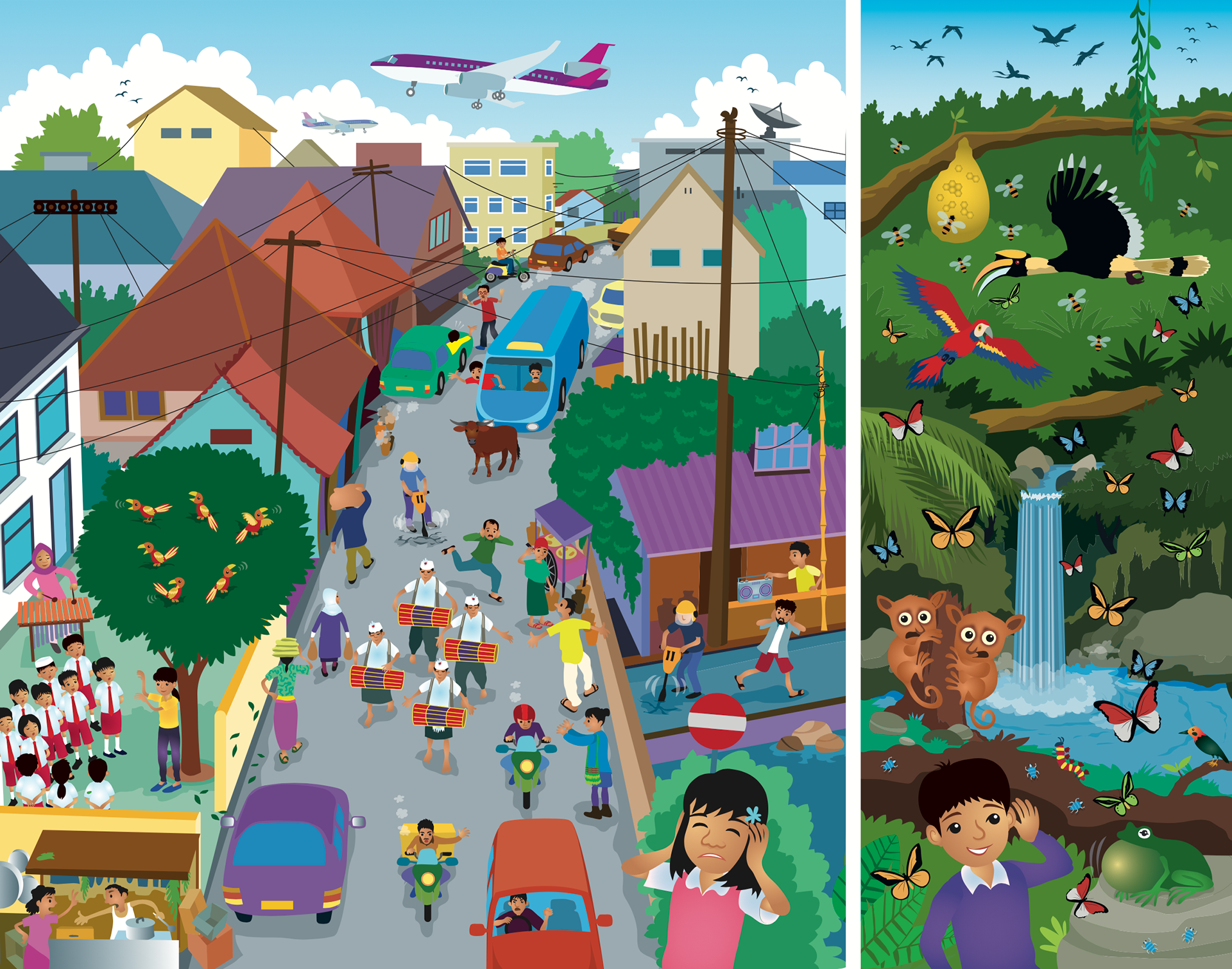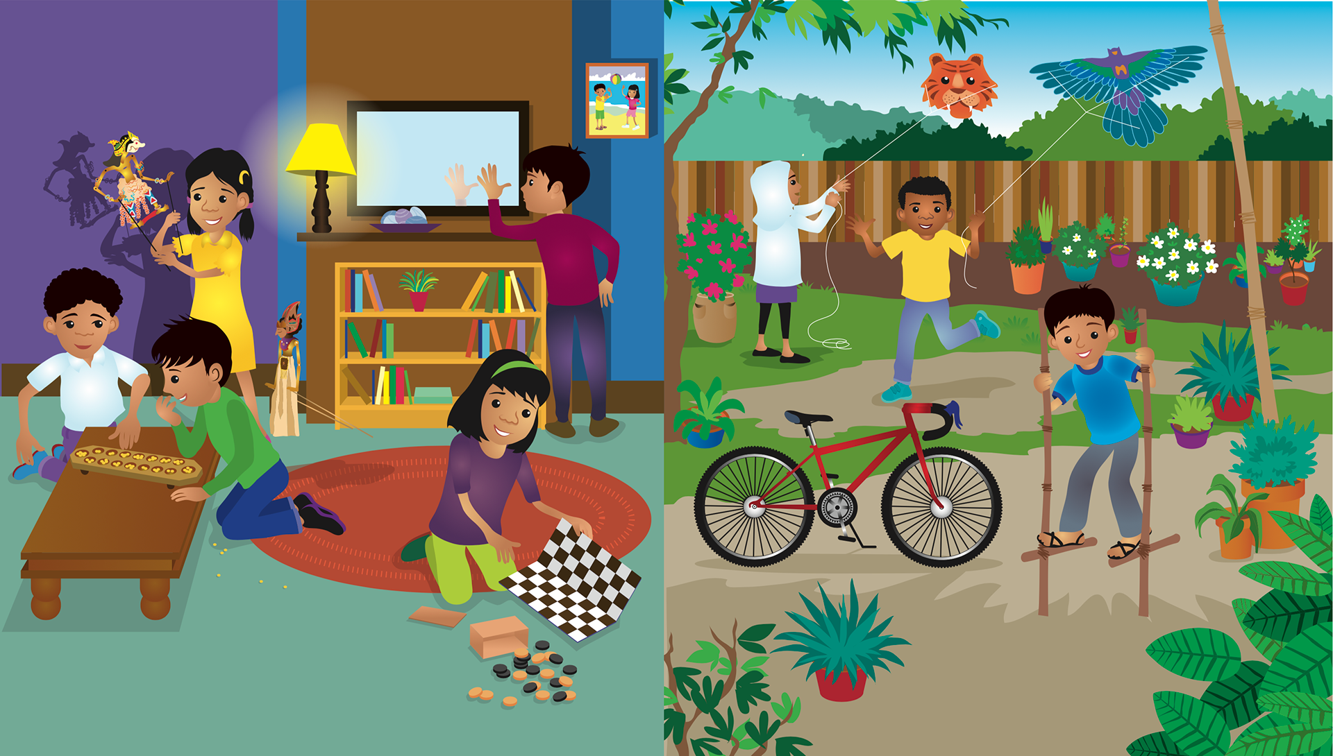 A series of full page spread artworks for Hodder & Stoughton Singapore for the Indonesian Curriculum. The client is in Cape Town, S.Africa. So a truly international project.